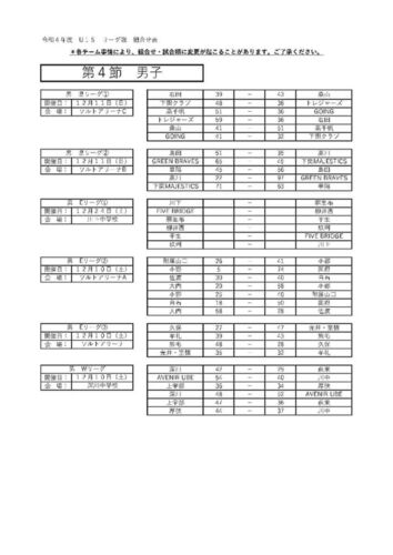 令和4年度 山口県U15カテゴリー部会リーグ戦 第4節 ■期 日 令和4(2022)年12月10日(土)~11日(日)■場 所 県内各地■結 果 PDF版はこちら ※宇部市からは男子 AVENIR UBE・上宇部、女子 宇部ESARADE・上宇部・常盤が出場しました。